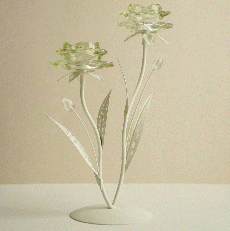 Bougeoir dble fleurs vert.33cm