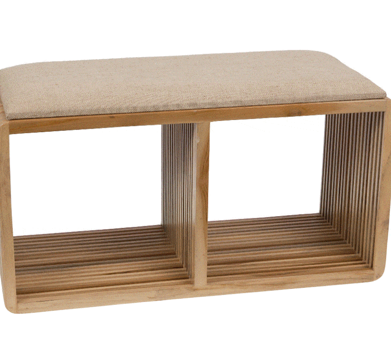 224.90 €Hauteur : 40 cmLargeur : 35 cmProfondeur : 80 cmPoids: 12,56 kgMatières : teck, MDF, tissuColoris : bois naturel beige -