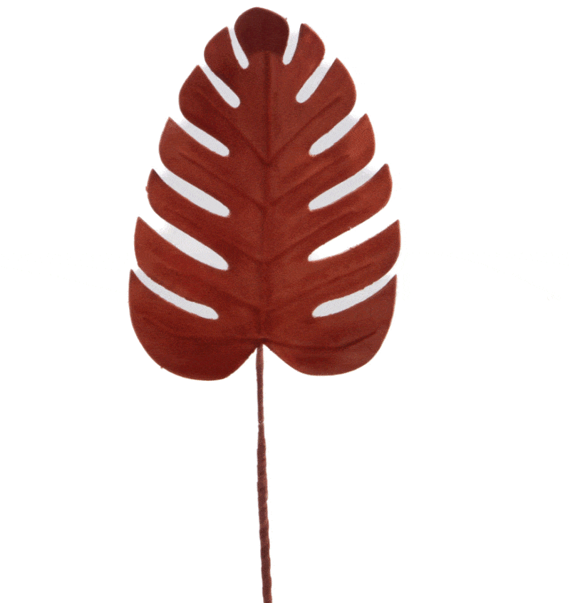 Grande feuille tropicale en EVA couleur brique, idéale pour enrichir une gamme de décorations florales artificielles. Son format généreux (121 cm de hauteur) et son poids léger facilitent la présentation et la manipulation. Produit adapté à une clientèle recherchant des éléments décoratifs réalistes et durables, parfait pour compositions florales ou aménagements d’espaces intérieurs.