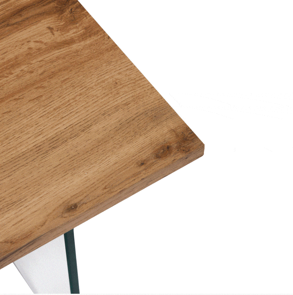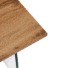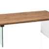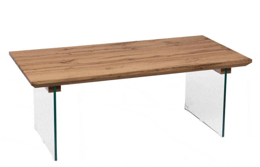 Table basse 120x60x45 cm, plateau en MDF et piètement en verre transparent. Format rectangulaire grand format adapté aux espaces de vie contemporains et aux mises en scène catalogues. Produit léger pour sa taille (26,6 kg), facile à stocker et à shooter. Design épuré mêlant chaleur du bois et légèreté du verre.