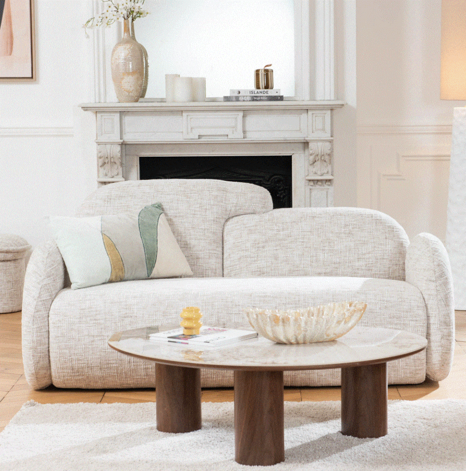 Apportez une touche contemporaine et chaleureuse avec la table basse. Son plateau en céramique aux motifs uniques repose sur un large piétement au rendu bois, créant un contraste élégant et naturel. Idéale pour structurer le coin salon, elle allie résistance et esthétique raffinée pour sublimer votre intérieur.