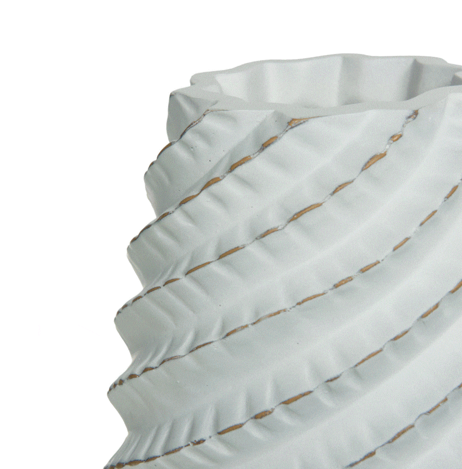 Apportez du caractère à votre intérieur avec ce vase. Sa silhouette torsadée et sa finition blanche texturée créent un jeu d’ombres élégant, parfait pour fleurs sèches ou branches décoratives. Hauteur 35 cm : présence assurée sans alourdir l’espace. Léger et facile à déplacer, il sublime instantanément une console, une table ou un coin lecture.